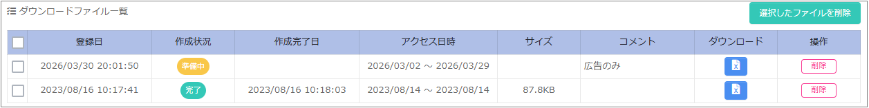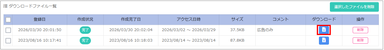 5.「ダウンロード」ボタンをクリックして、csvファイルをダウンロードします。